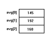 If you're a little confused, look at Figure 13.2, which shows how the avg[] array might look in memory. In this case, the three bowling averages are 145, 192, and 160. The value of avg[0] is 145, the value of avg[1] is 192, and the value of avg[2] is 160.