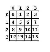 table[0][0] = 0; table[1][0] = 1; table[2][0] = 2; table[3][0] = 3; table[0][1] = 4; table[1][1] = 5; table[2][1] = 6; table[3][1] = 7; table[0][2] = 8; table[1][2] = 9; table[2][2] = 10; table[3][2] = 11; table[0][3] = 12; table[1][3] = 13; table[2][3] = 14; table[3][3] = 15;