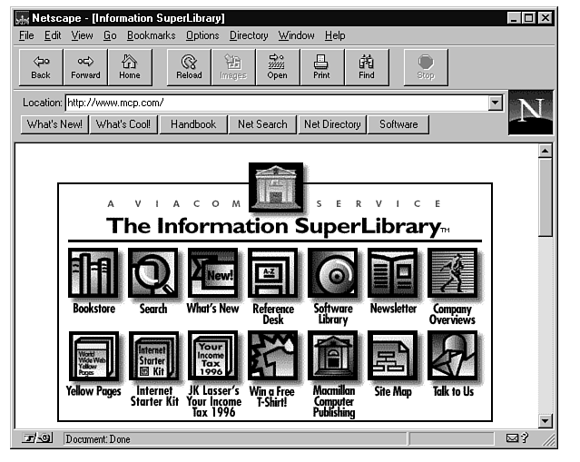 Ready for a full-fledged example? Listing 28.3 is a complete applet that enables the user to link to an URL. Listing 28.4 is the HTML document that loads the applet. Because this applet actually interacts with a browser and the Internet, you must have made your Internet connection before running the applet. Then, to run the applet, load its HTML document into a Java-compatible browser such as Netscape Navigator 2.0. When you do, you'll see a window similar to that shown in Figure 28.1. In this figure, the user has already entered the URL he wishes to visit. In Figure 28.2, the browser has made the requested connection. Figure 28.3 shows the browser when the user enters an invalid URL string.