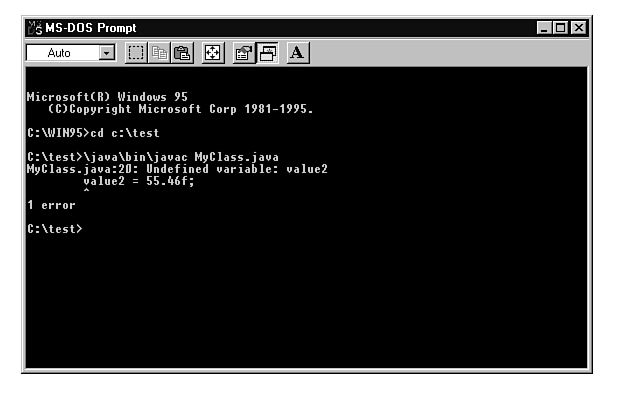 Figure 5.2 : When you try to access a variable that's out of scope, Java's compiler thinks that the variable is undefined.